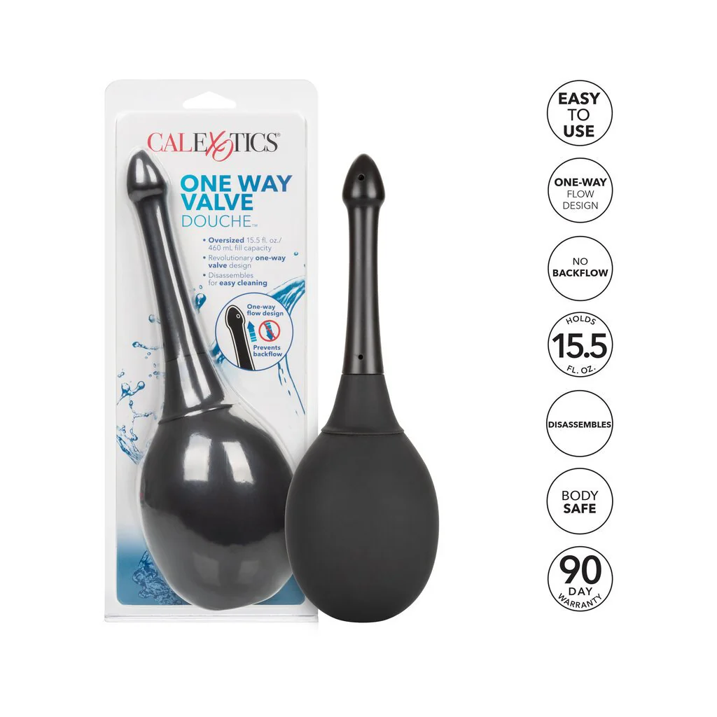 The One Way Valve Douche is here to make sure you enjoy good clean fun with every backdoor adventure. The powerful system includes a large EZ squeeze bulb and a slim applicator tip with a one way valve.