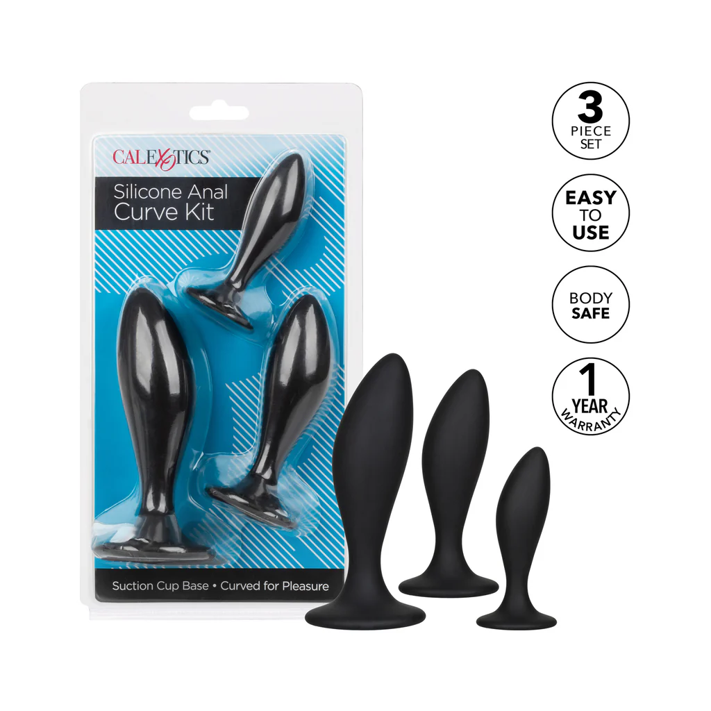 Open yourself up to a world of thrilling anal pleasure with the Silicone Curve Anal Kit. Indulge in knee-trembling pleasure with the set of 3 graduated sizes of gently curved anal plugs with suction cup bases. Gently increase your pleasure with the naturally curved design made to hit all the right spots and keep things comfortable during playtime. Each probe in our kit gradually increases in length and girth for superb pleasure at any level of pleasure play. While each increase of your training expands your horizons, use the convenient suction cup base for steamy stimulation, effortless insertion and gentle removal. The flexible probes are made from a smooth, seamless silicone. This body safe material is unscented and phthalate free to keep your most sensitive spots happy and healthy